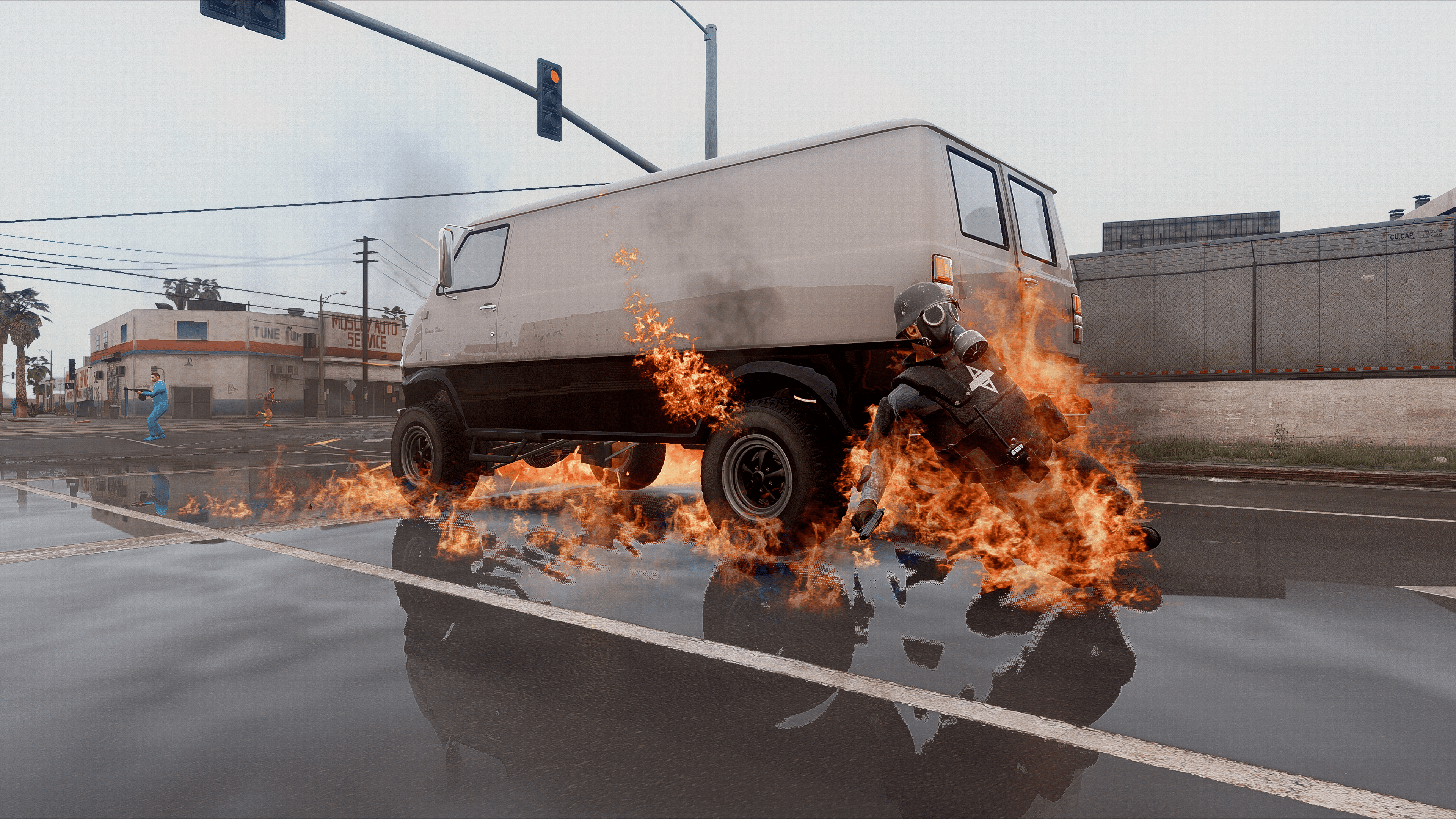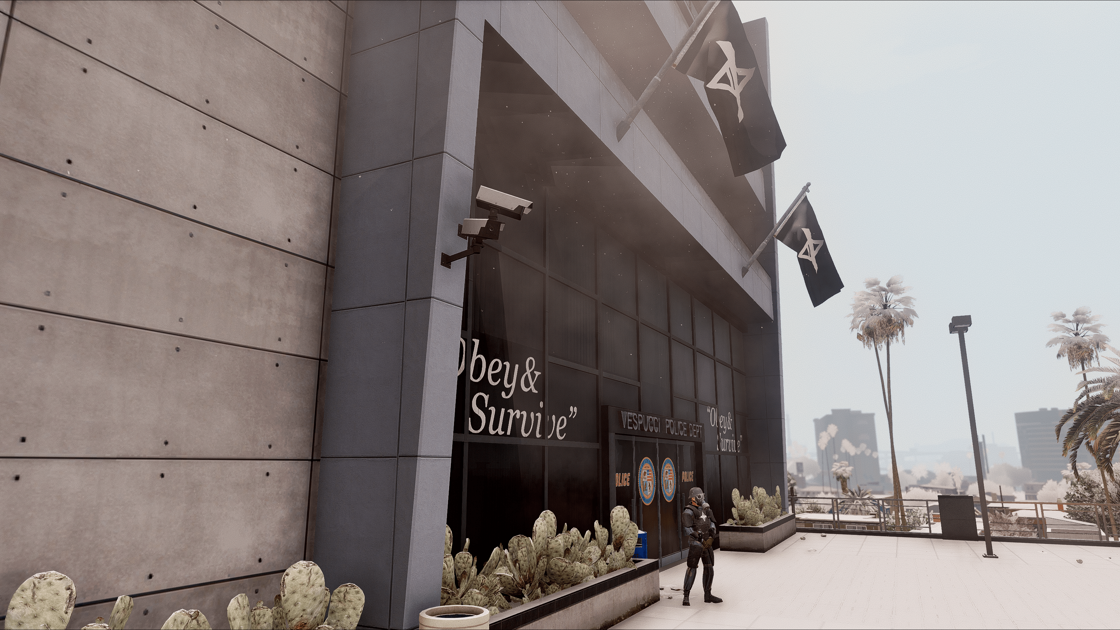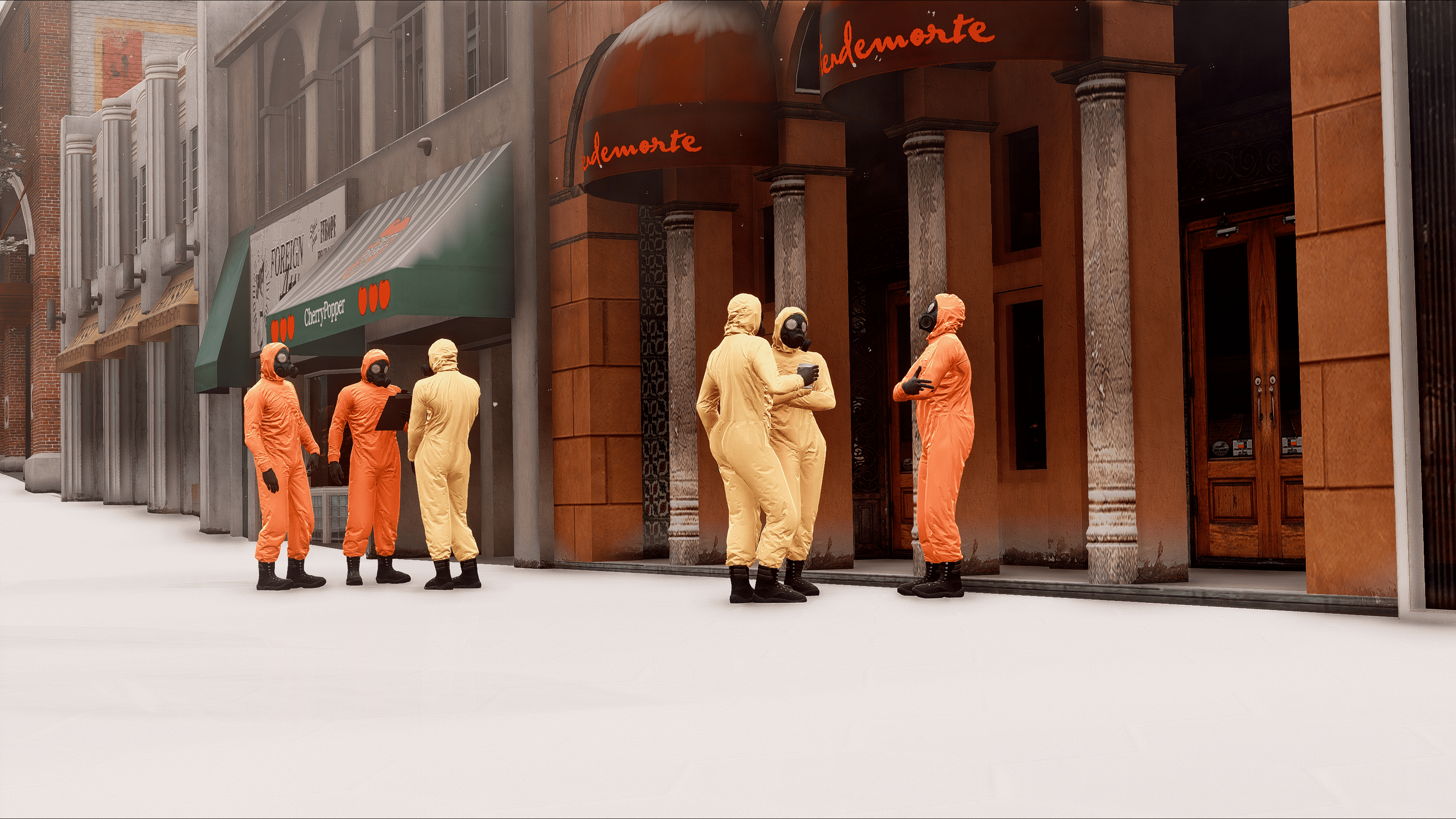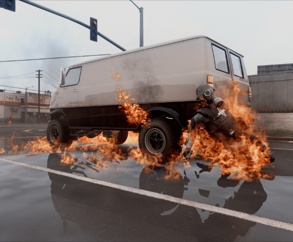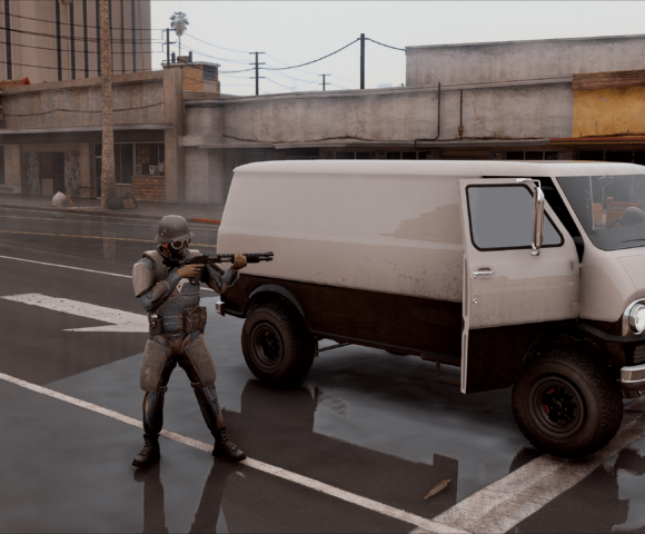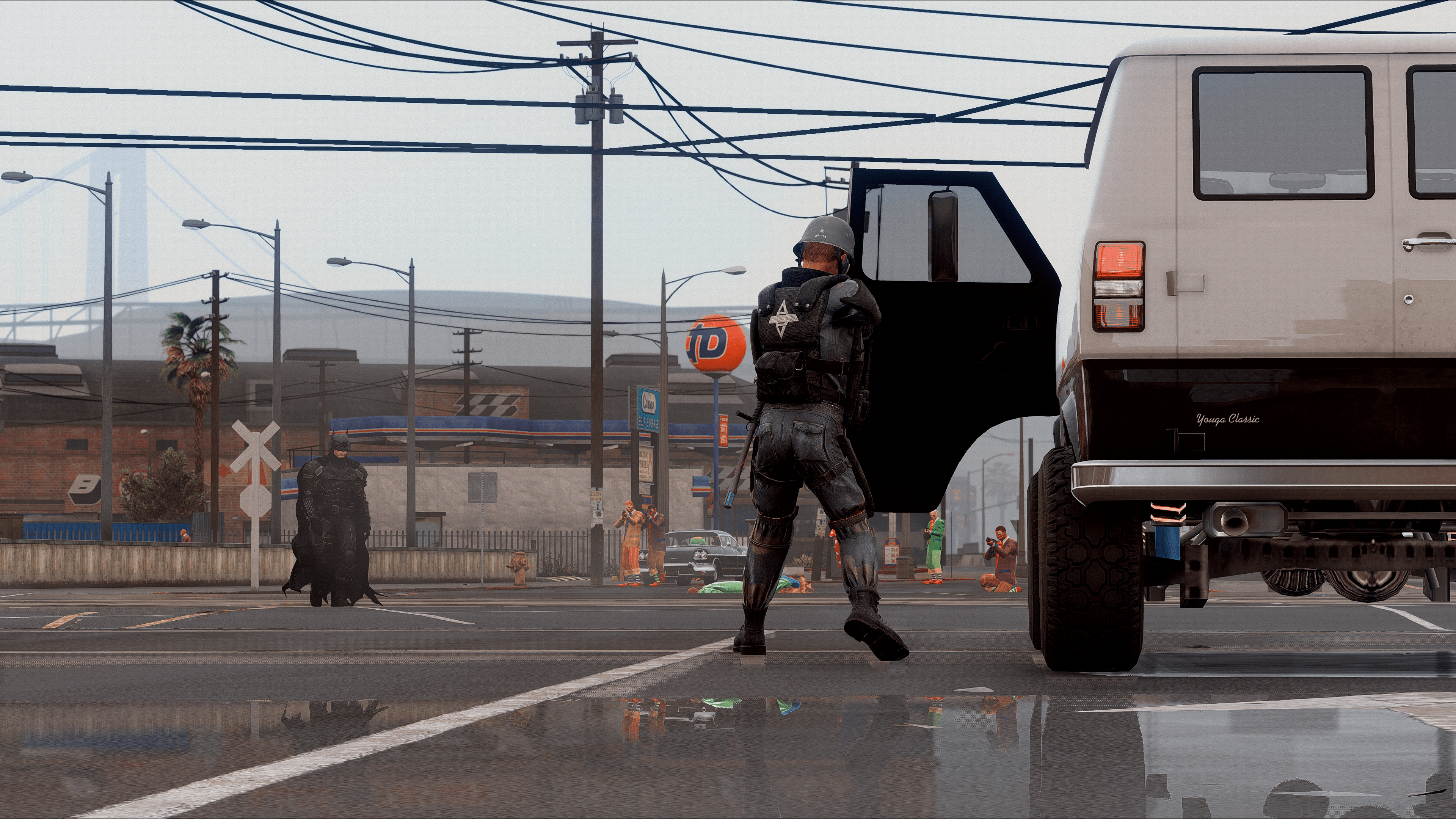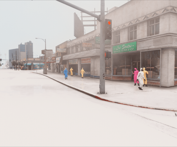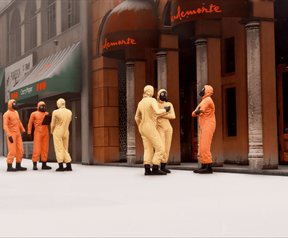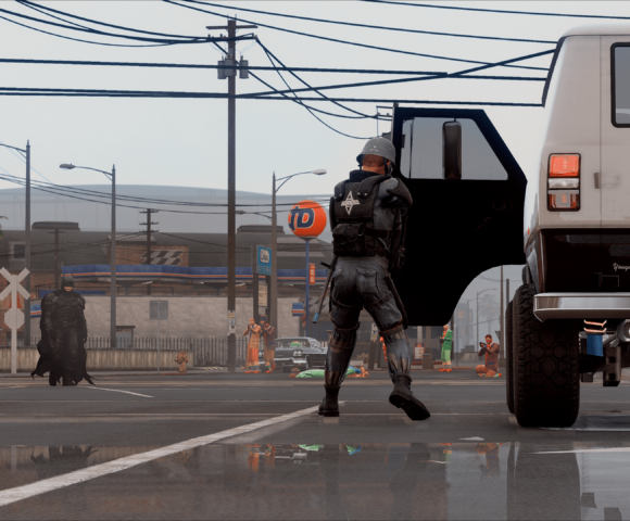 GothamV tries to represent the Gotham City environment as much as possible. Due the Scarecrow’s toxins most of the citizen needs to use gas mask and special clothes.